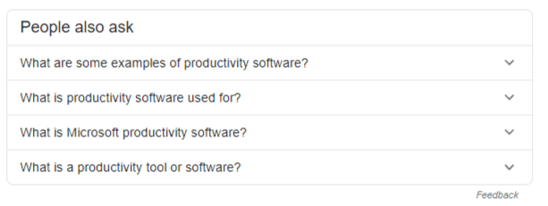 For example, when you type ‘productivity software’, all the websites that appear in the first few results are about the best productivity apps or best productivity software. This indicates that people want to know more about apps and to rank well, you need to create content along the same lines too.